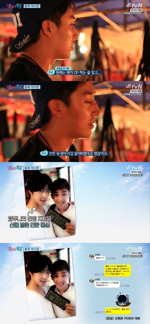 Upon returning, Son HoJun gave the wallet to his best friend U-Know Yunho.
