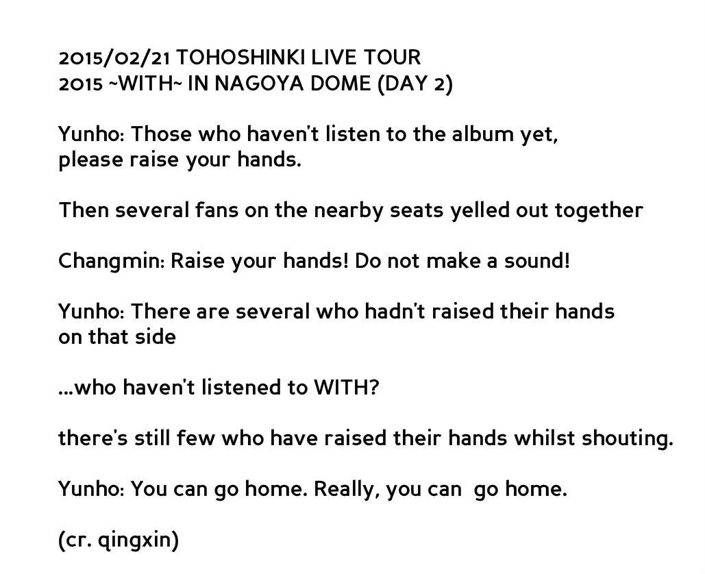 - Yunho: U can go home. Really, you can go home. (to few people who haven’t listen to WITH) #TOHOWITHTOURINNAGOYA(D2)