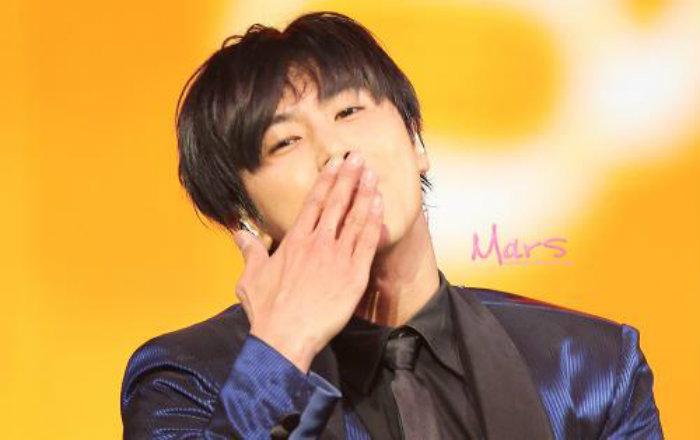 Kyu was in green top, holding the pen lights, did his best to do the "T" post with it, that was so cute!