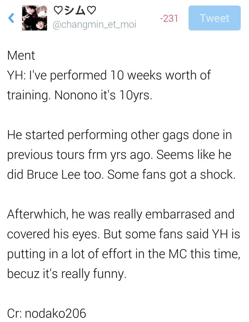 - Yunho pretending Bruce Lee in nagoya #TohoWithTour tonight …… its really funny even himself feel shy & laughing too ㅋㅋㅋㅋㅋㅋㅋㅋㅋ