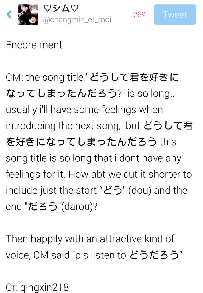 - Changmin was talking abt how doushite's title was too long. A fan shouted dou-daro and changmin repeated it. Yunho then said dou-daro too😏