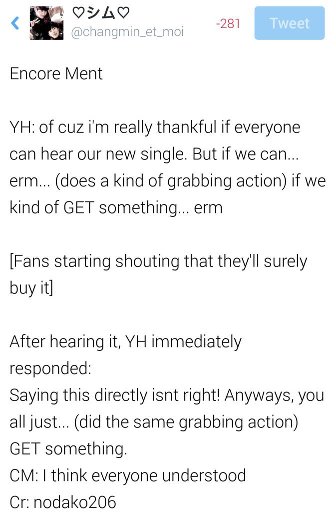 - Always feel thankful after seen #Tohoshinki concert, because of your hard work I feeling bless and proud of u #Yunho #Changmin